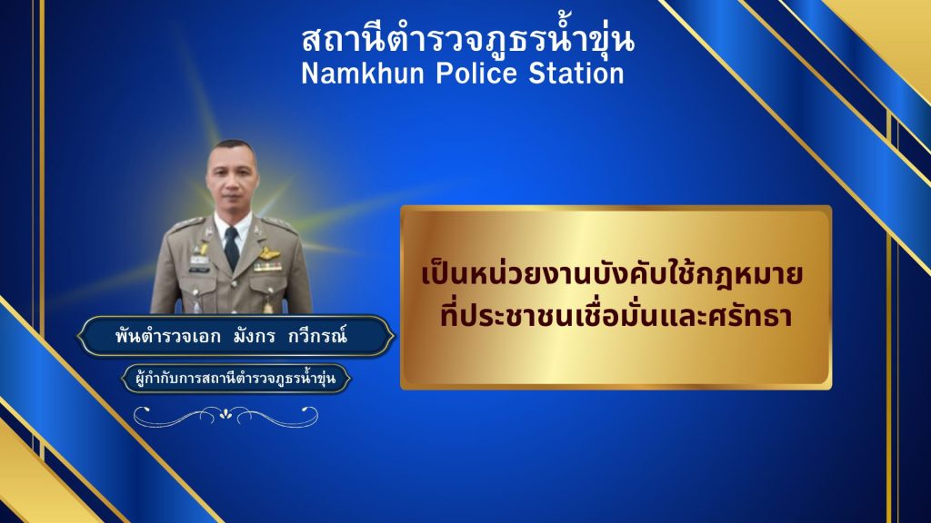 โครงการบำบัดทุกข์ บำรุงสุข สร้างความมั่นคง ปลอดภัย ยั่งยืน เรียน ผู้บังคับบัญชา วันนี้ 23 พ.ค. 68 เวลา 09.00 น. พ.ต.อ.ภูเพชร ลีเลิศ ผกก.สภ.น้ำขุ่น , พ.ต.ต.ยุทธ Read More »