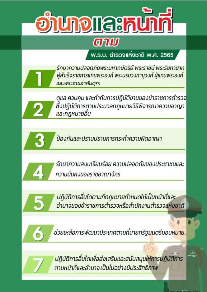 5. ปฏิบัติการอื่นใดตามที่กฎหมายกำหนดให้เป็นหน้าที่ของตำรวจหรือสำนักงานตำรวจแห่งชาติ