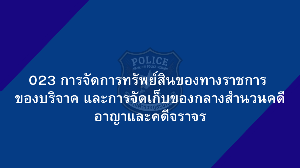 • o23 การจัดการทรัพย์สินของทางราชการ ของบริจาค และการจัดเก็บของกลางสำนวนคดีอาญาและคดีจราจร